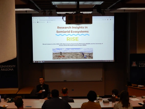Started in 2004, the RISE (Research Insights in Semi-Arid Ecosystems) Symposium has pursued the objectives of sharing recent results of scientific research in semiarid environments and encouraging future research and outreach activities, with an emphasis on work conducted at the USDA-ARS Walnut Gulch Experimental Watershed (WGEW) and the University of Arizona Santa Rita Experimental Range (SRER).